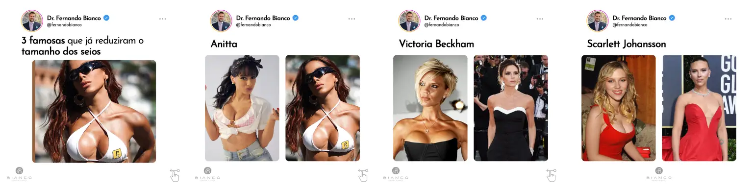 Os posts cuidadosamente planejados foram projetados para serem autênticos e informativos, abordando temas relevantes no campo da cirurgia plástica. Desde dicas pré-operatórias até casos de sucesso, cada peça de conteúdo foi elaborada para oferecer valor aos seguidores e estabelecer o Dr. Fernando Bianco como uma autoridade confiável na sua área.